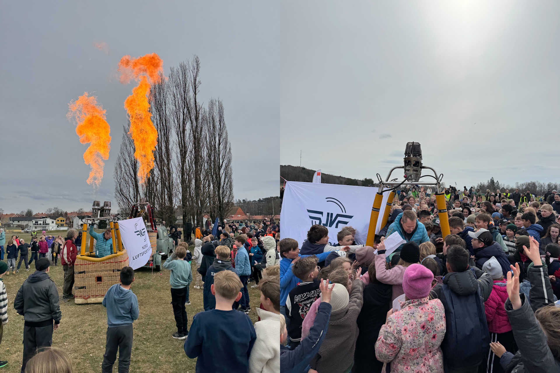 Dessverre var vind og vindkast ikke forenelige med hverken forankret ballongflyging eller fri flukt. Ei heller for varmluftskip, slik vi hadde planlagt. Heldigvis var det stor glede blant de fremøtte skolebarna når ballongene kjørte demonstrasjon av brennere og slikt.